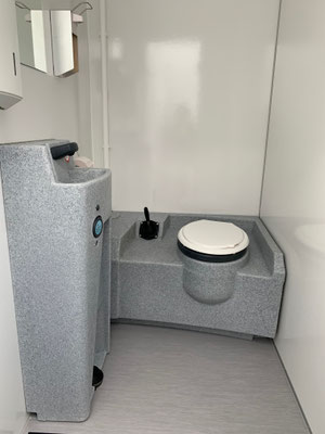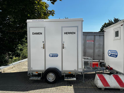 Our modern and high-quality mini 1/1 toilet trailer with tank gives your event the right touch.